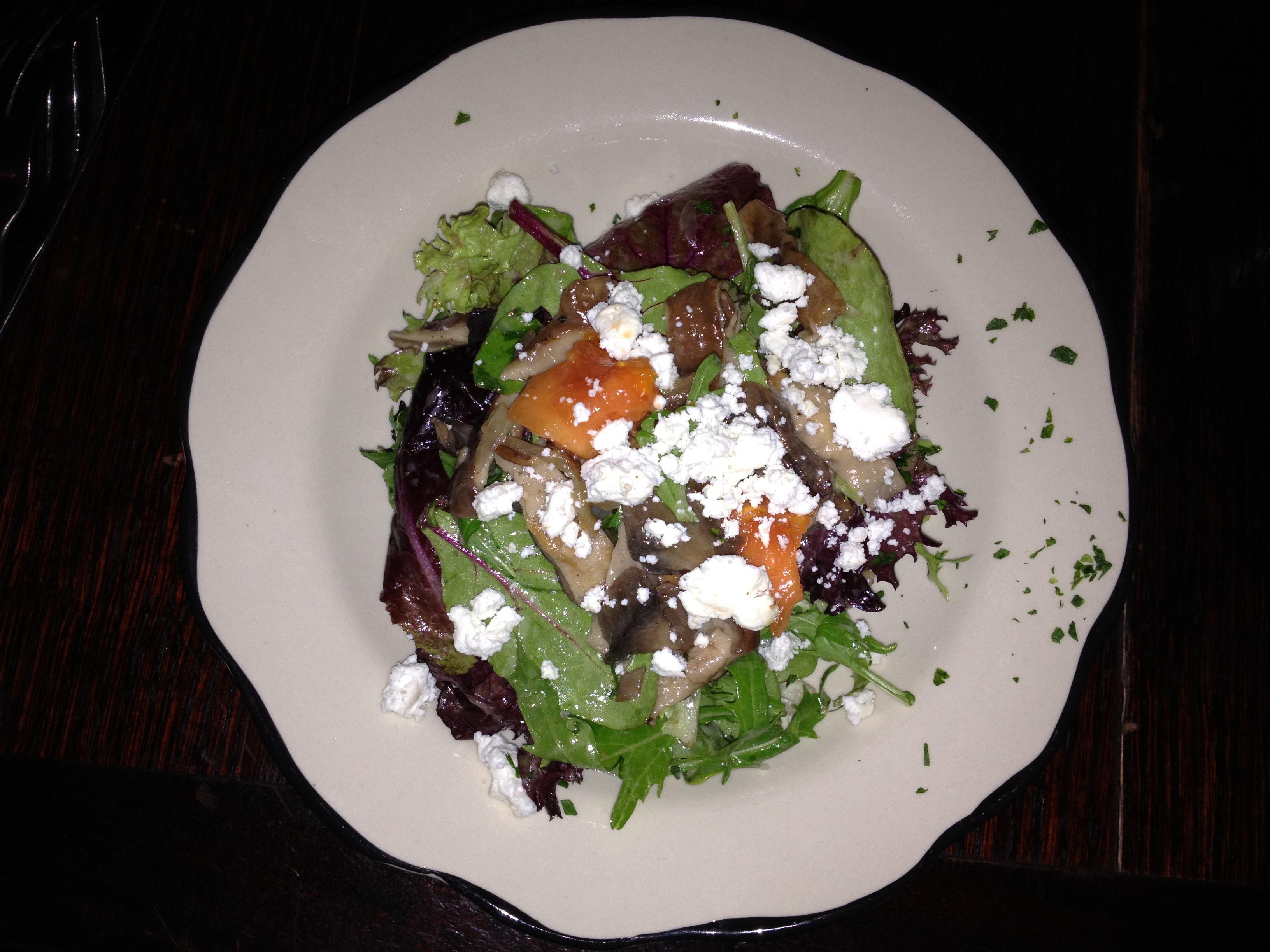 Xai Xai salad – baby greens with papaya, mushrooms, sun-dried tomatoes, and goat cheese in a ginger-lemon-guava dresing