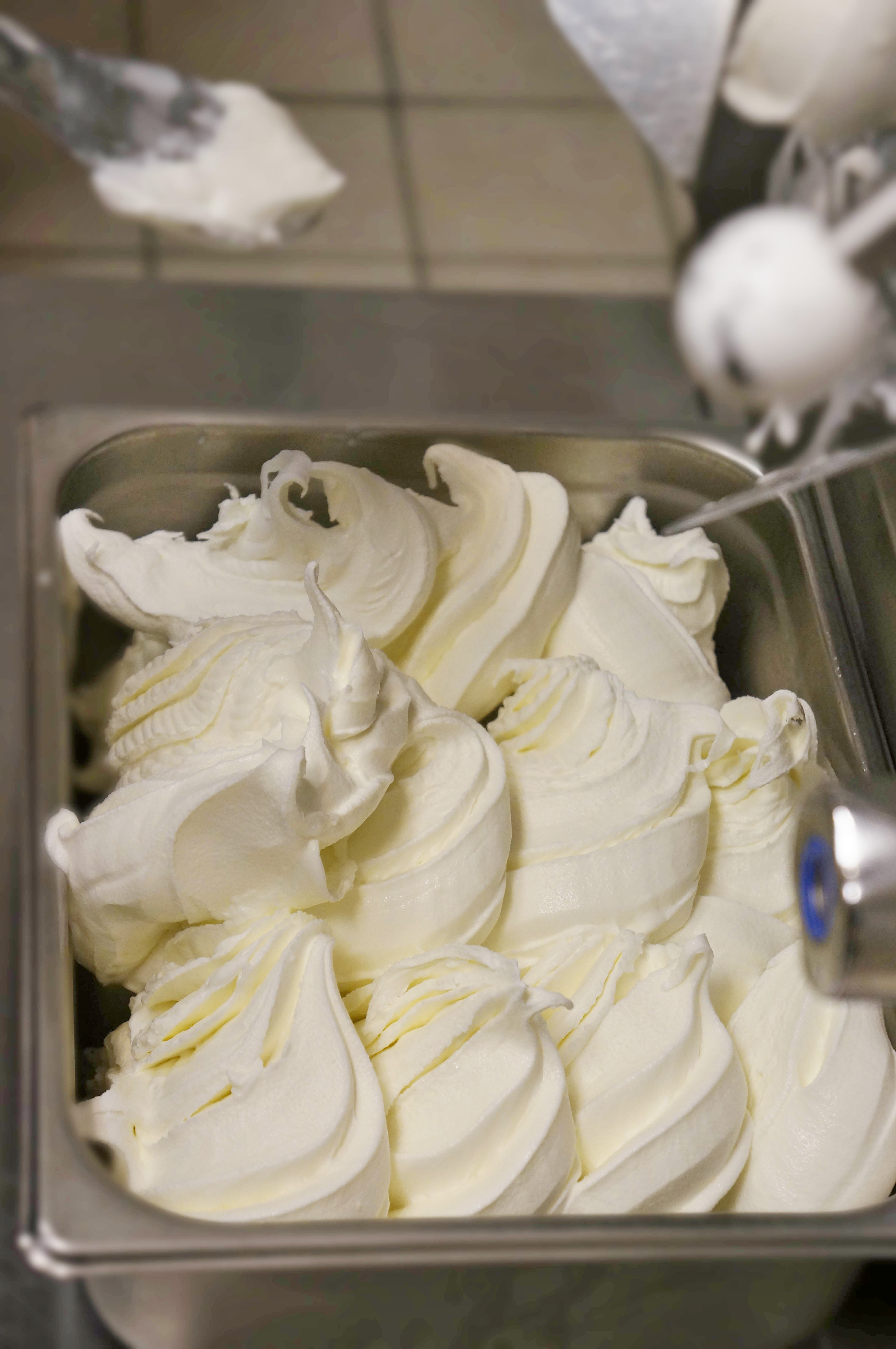 Vanilla gelato (or Cream in Cookies and Cream) made during the gelato making class at Mia Chef Gelateria in NYC
