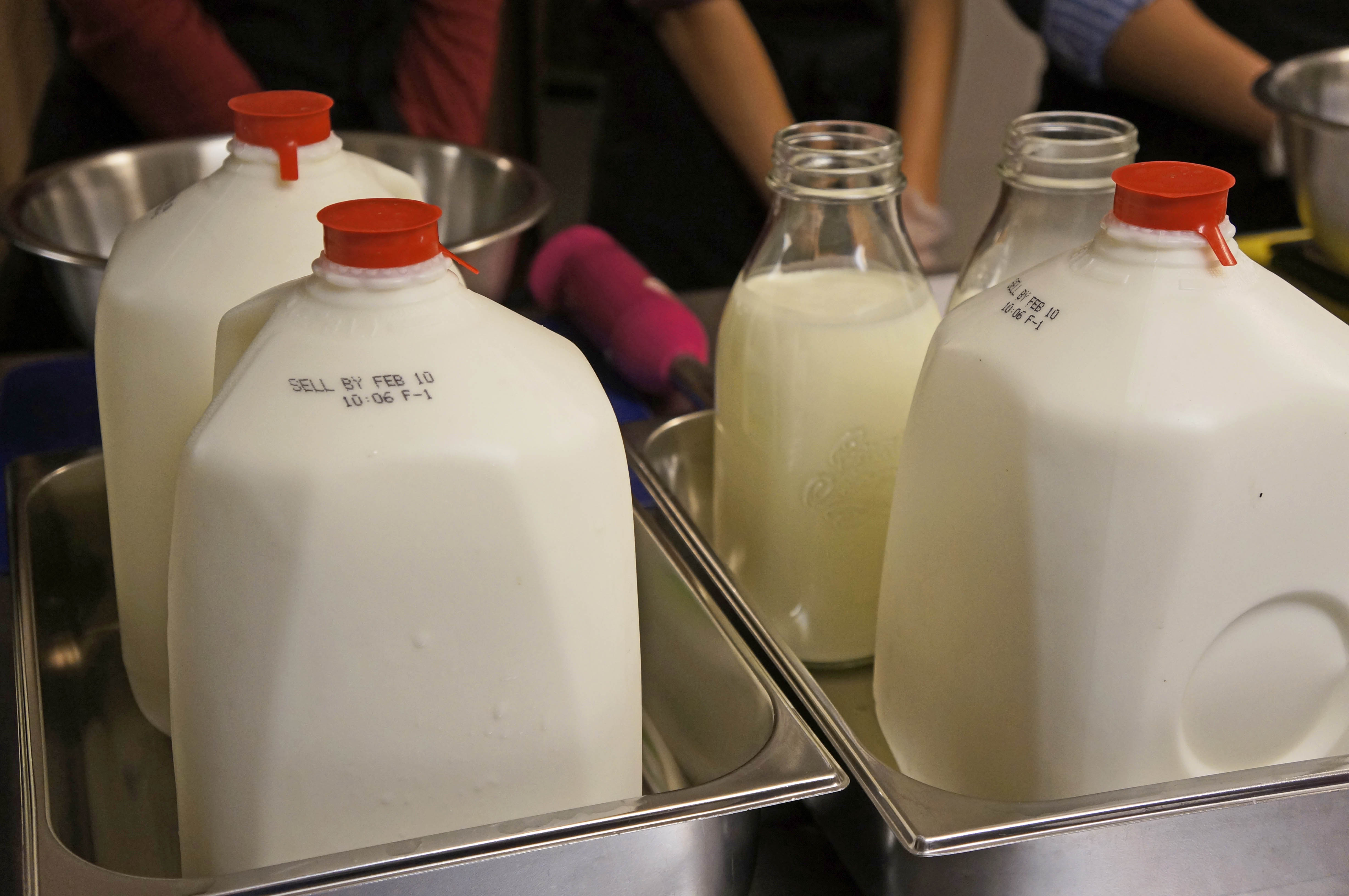 - Cream being added to milk to make the gelato base in the gelato making class at Mia Chef Gelateria in NYC