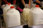 - Consolidating the blended mixture from all stations into a common bucket to make the gelato base during the gelato making class at Mia Chef Gelateria in NYC