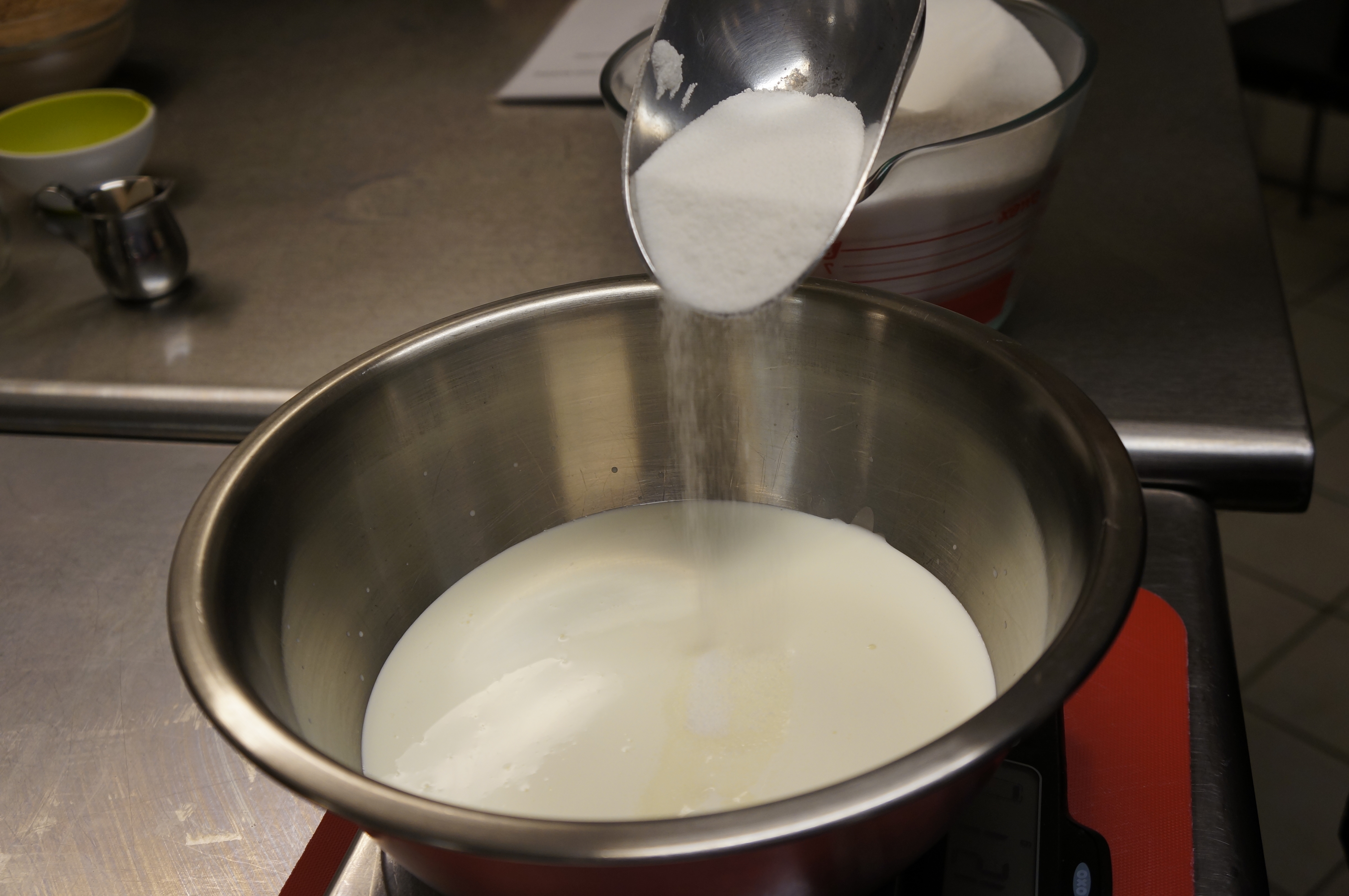 - Dextrose addition to make the gelato base during the gelato making class at Mia Chef Gelateria in NYC