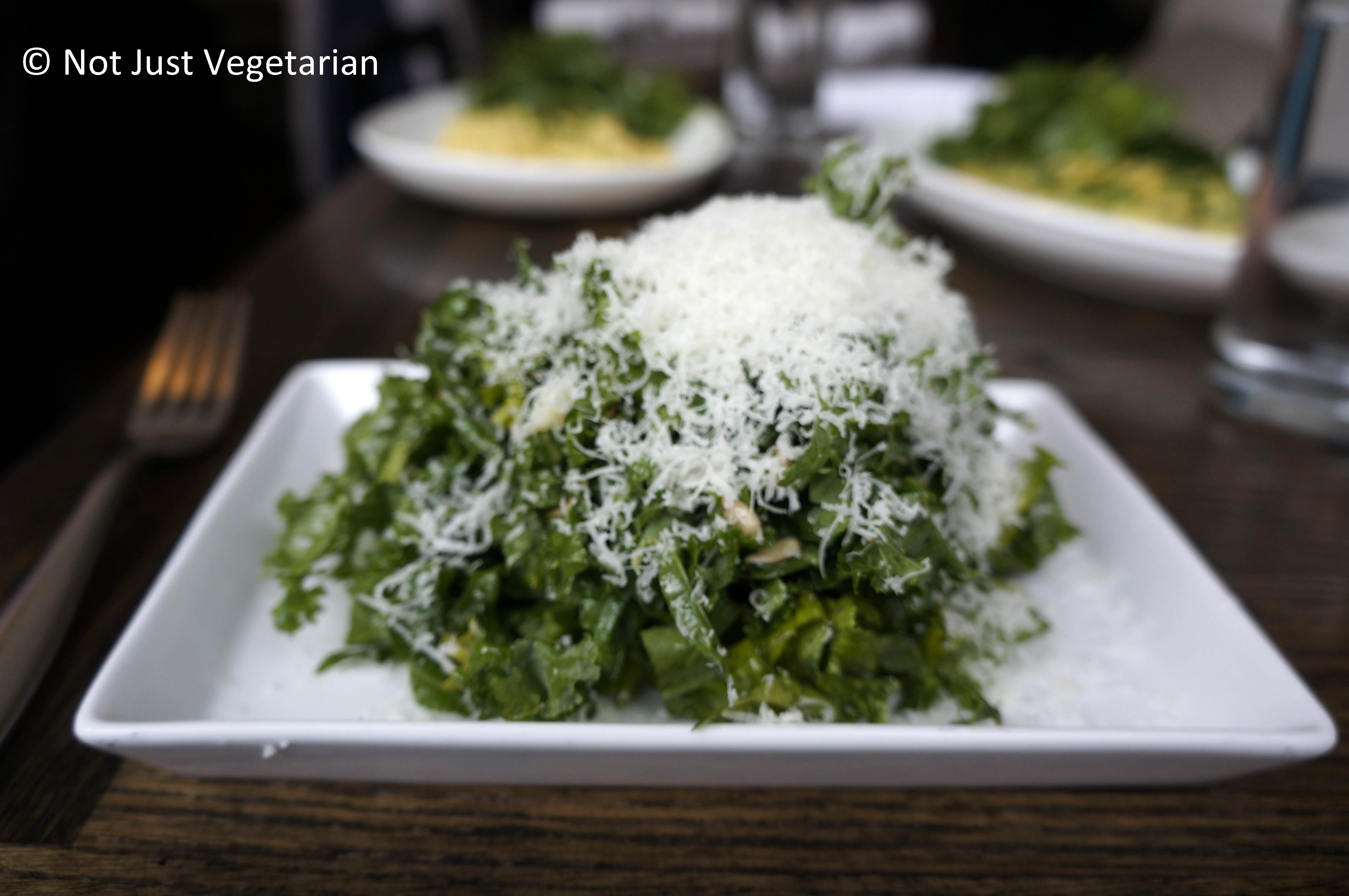 Russian kale salad: This was a delicious salad of shredded Russian Kale leaves, and sunflower seeds tossed in a lemon vinaigrette and topped with a lot of thinly shredded pecorino cheese that was wispy thin. I am tempted to recreate this at home, with lesser cheese. This kale salad is among the best 5 Kale salads served in NYC and has the potential to convert anyone into a kale lover.