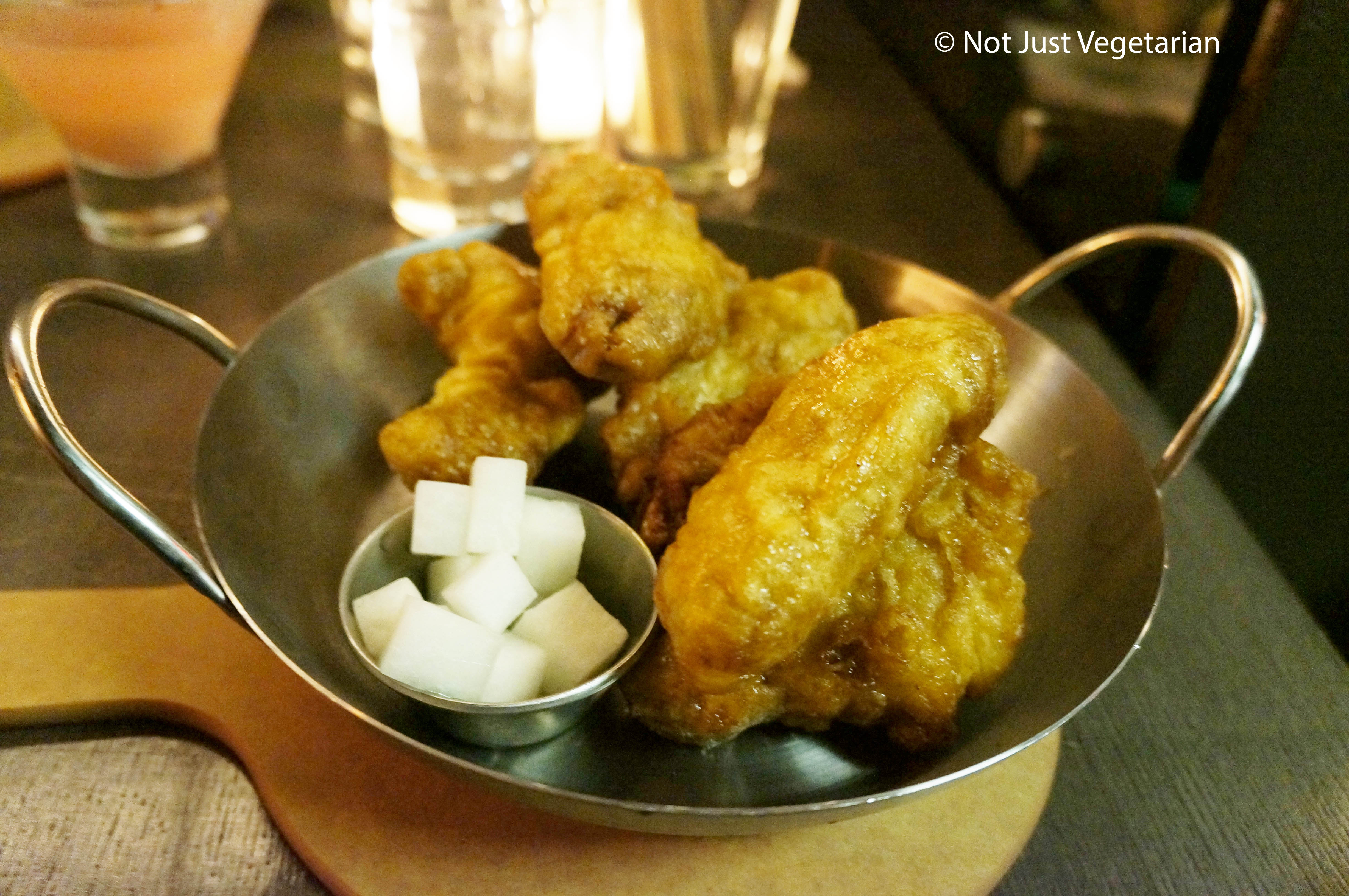 The chicken wings that arrived were deep-fried and it was the best dish of the evening. My friends were not very impressed – they were of the opinion, that anything fried tastes good. I beg to differ, but then…. Anyway, back to the chicken wings, I liked the crunchy exterior and the soft flavorful chicken inside. The diced daikon accompanying the wings was delicious too.