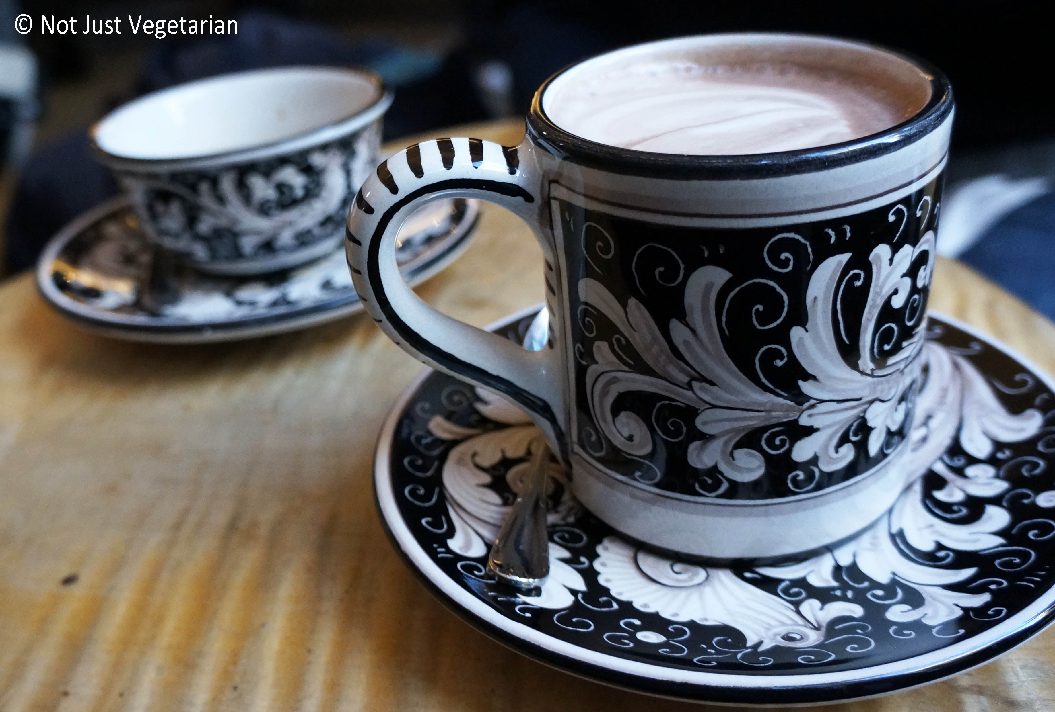 On a recent cold, wet afternoon, we were shopping in SoHo and wanted to get into a café for some coffee / tea and were drawn to the beautiful interiors of La Colombe Torrefaction in SoHo. La Colombe Torrefaction is a small café with very high ceilings, extremely sleek steel and wood furniture, and beautiful crockery. I wish I could say positive things about their hot chocolate and their coffee.