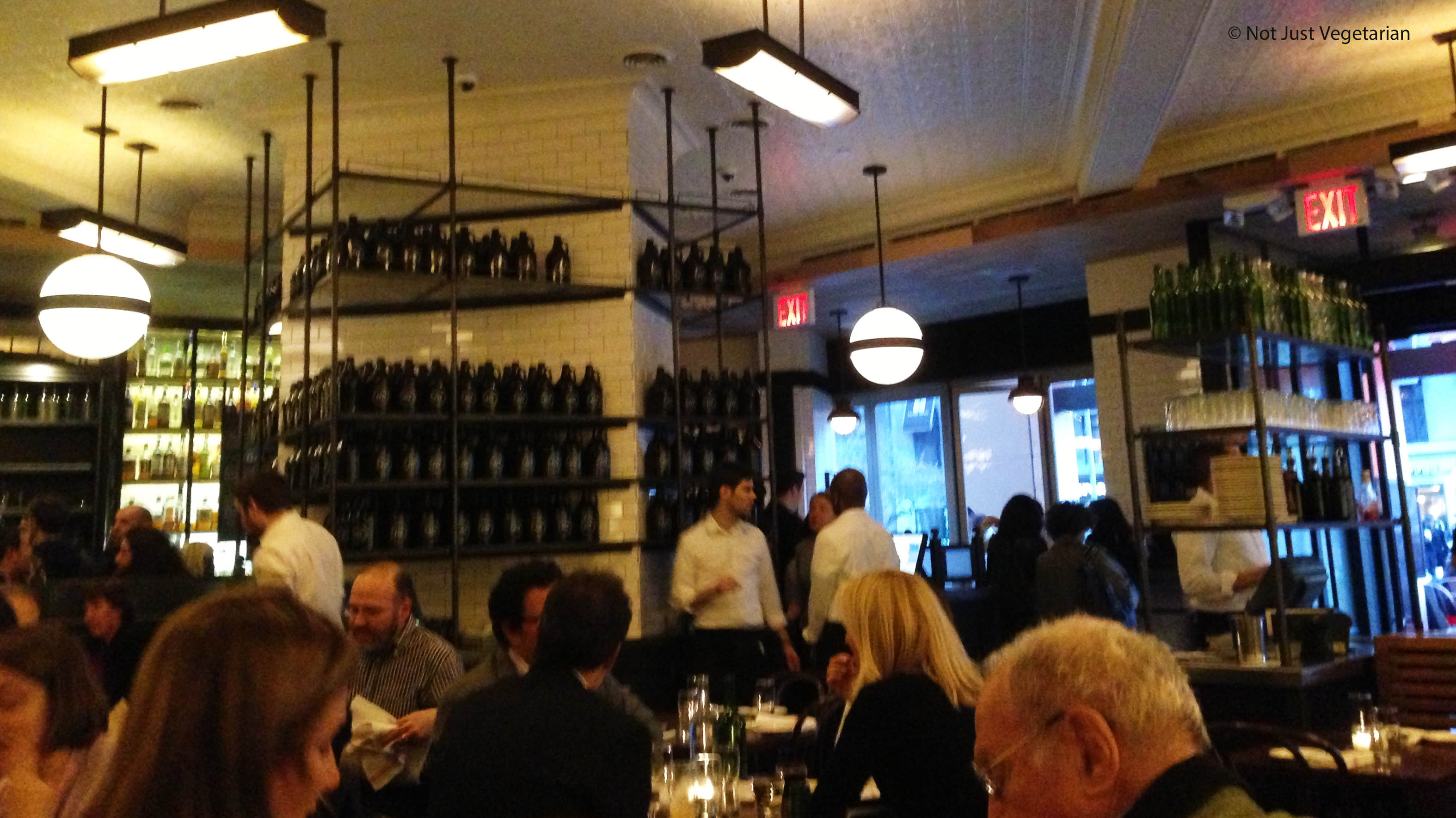 The menu had many vegetarian options among its bar snacks, appetizers and side dishes. A section on the menu is called Big salads where each salad is at least $22 – e.g., Roasted chicken salad was $22!! I chose to go with a couple of appetizers, because I was not very hungry and wanted to spend some calories on a drink and (a part of) a dessert.