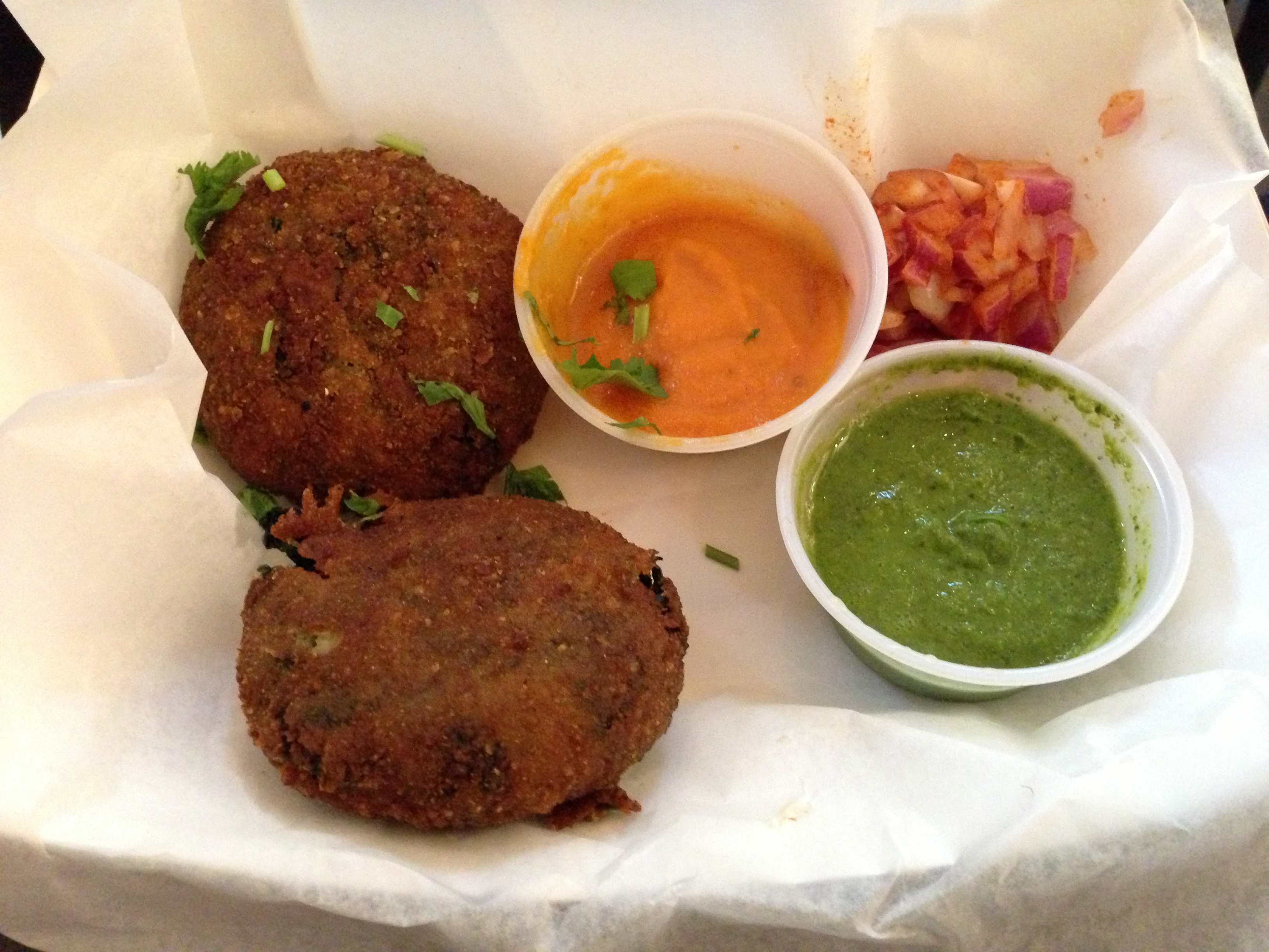 Spinach cutlets at Bombay Duck Co. in NYC (photo courtesy My Voice Over Gal)