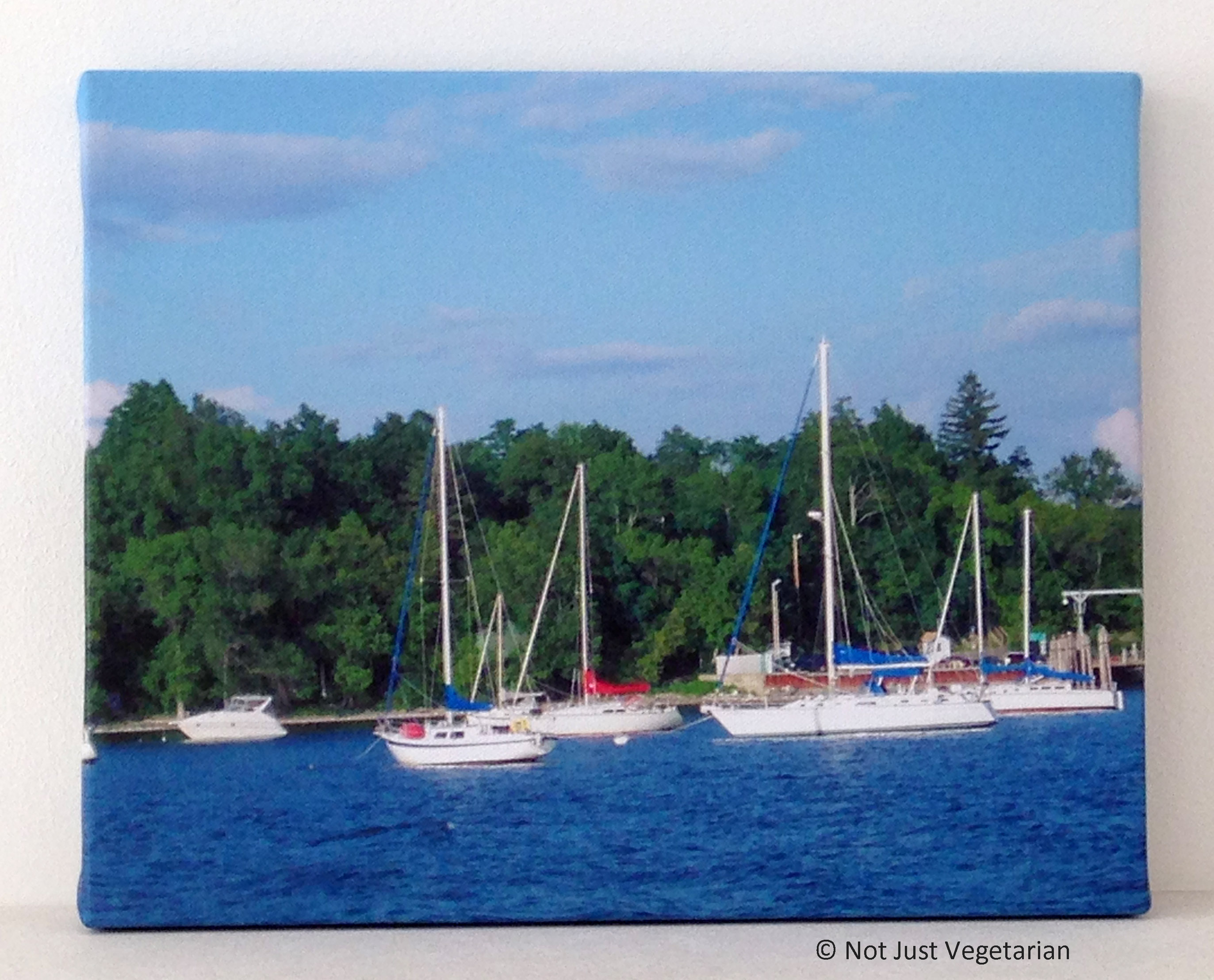 Printcopia was very easy to use. I was given a code to use for an 8″ x 10″ color canvas print (value $60). The toughest step in using Printcopia was figuring out which photo to choose for printing. Most people seem to choose close-ups for printing on canvas (why is that the case?), while I chose a photo of Lake Champlain from a road trip to Montreal a few summers ago. This photo always make me smile – brings to mind fond memories of the vacation and a gorgeous summer day on the lake!