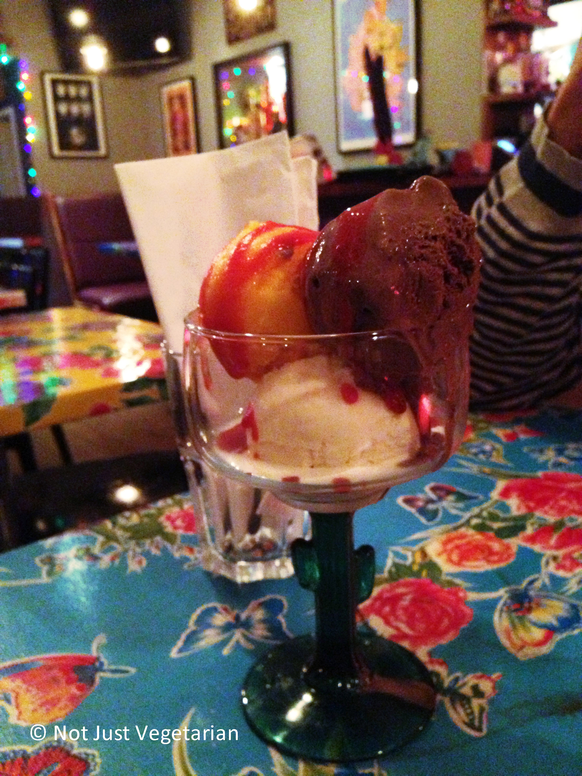 The ice creams we tried were dark chocolate (excellent), candied ginger (too sweet), and another flavour that I cannot remember.