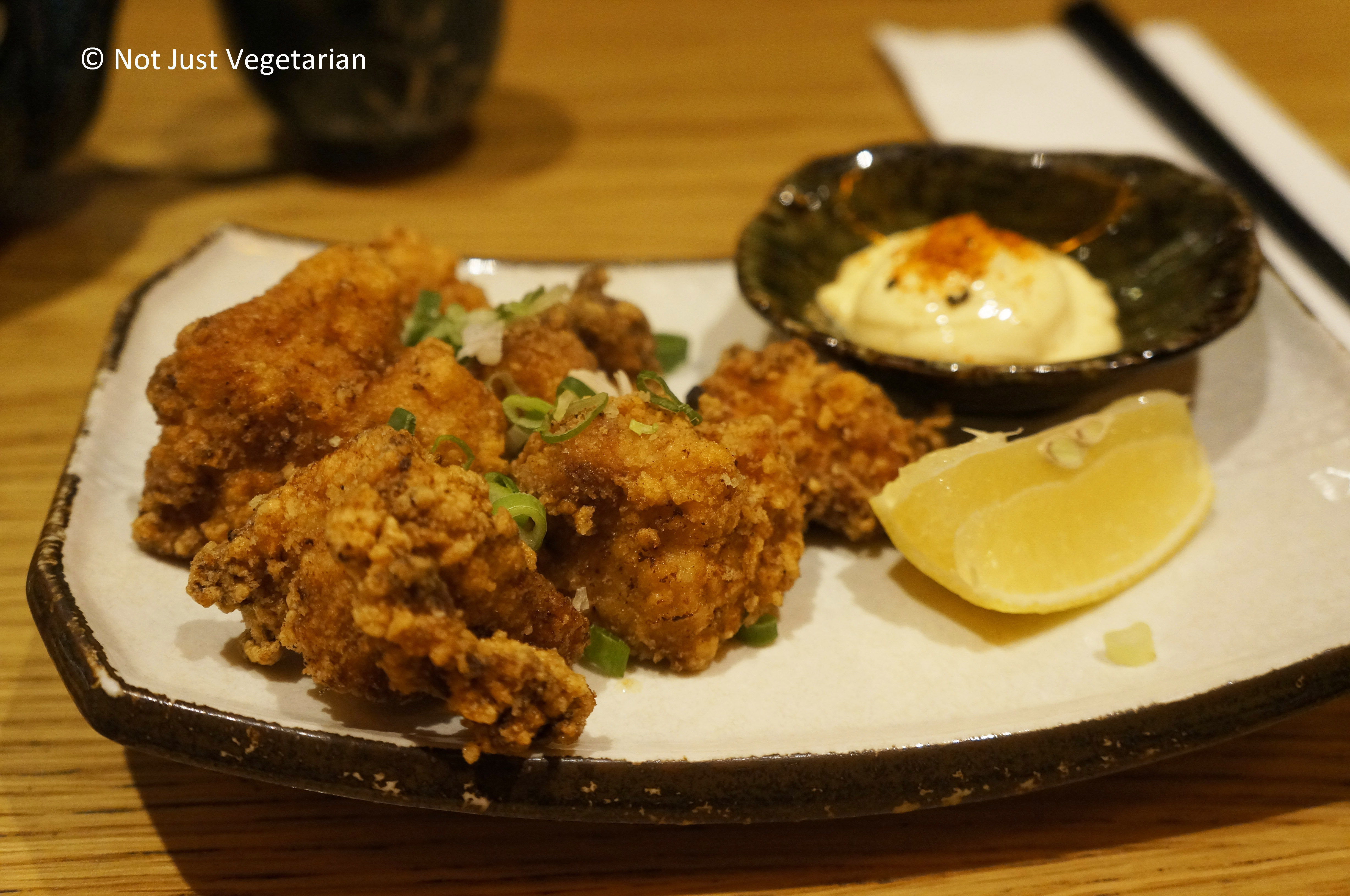 The kara-age (fried chicken) was nice and crispy outside and soft but dry inside and lacked a little something on the flavour dimension. It looks great in the picture below, but it’s not the best kara-age.