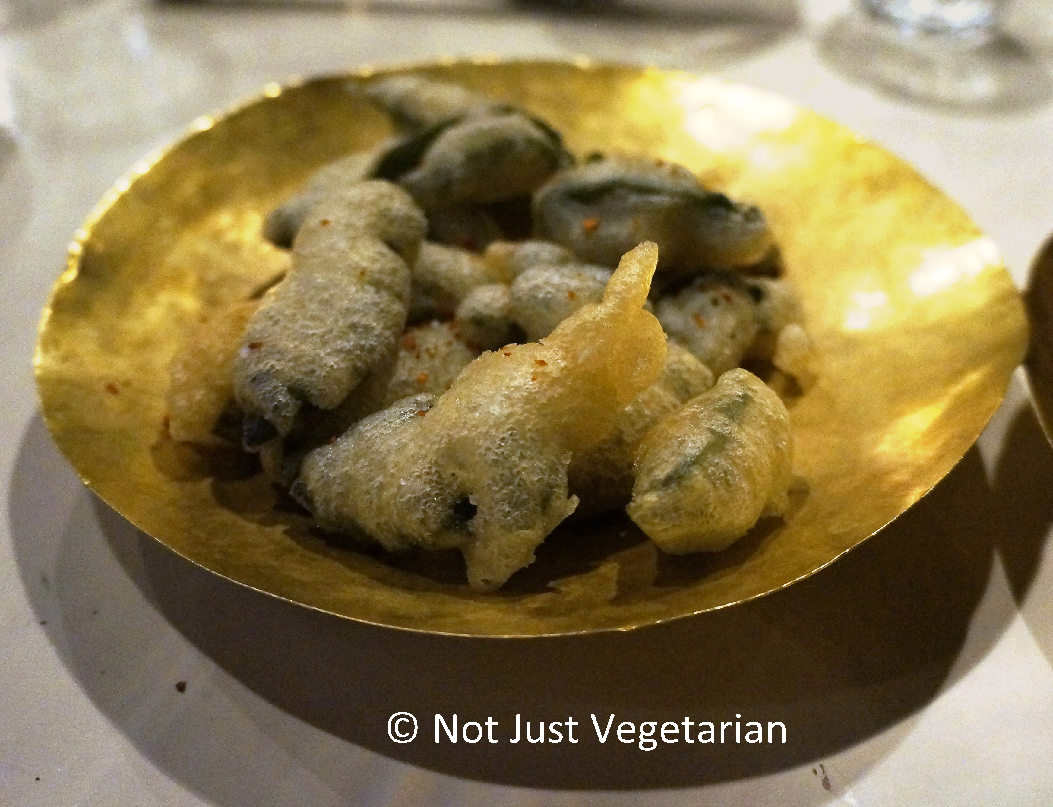 The smacked cucumbers were smacked to absorb more of the spices and salt, but was not very impressive. The sage leaf tempura was unique and did not leave an impression either.