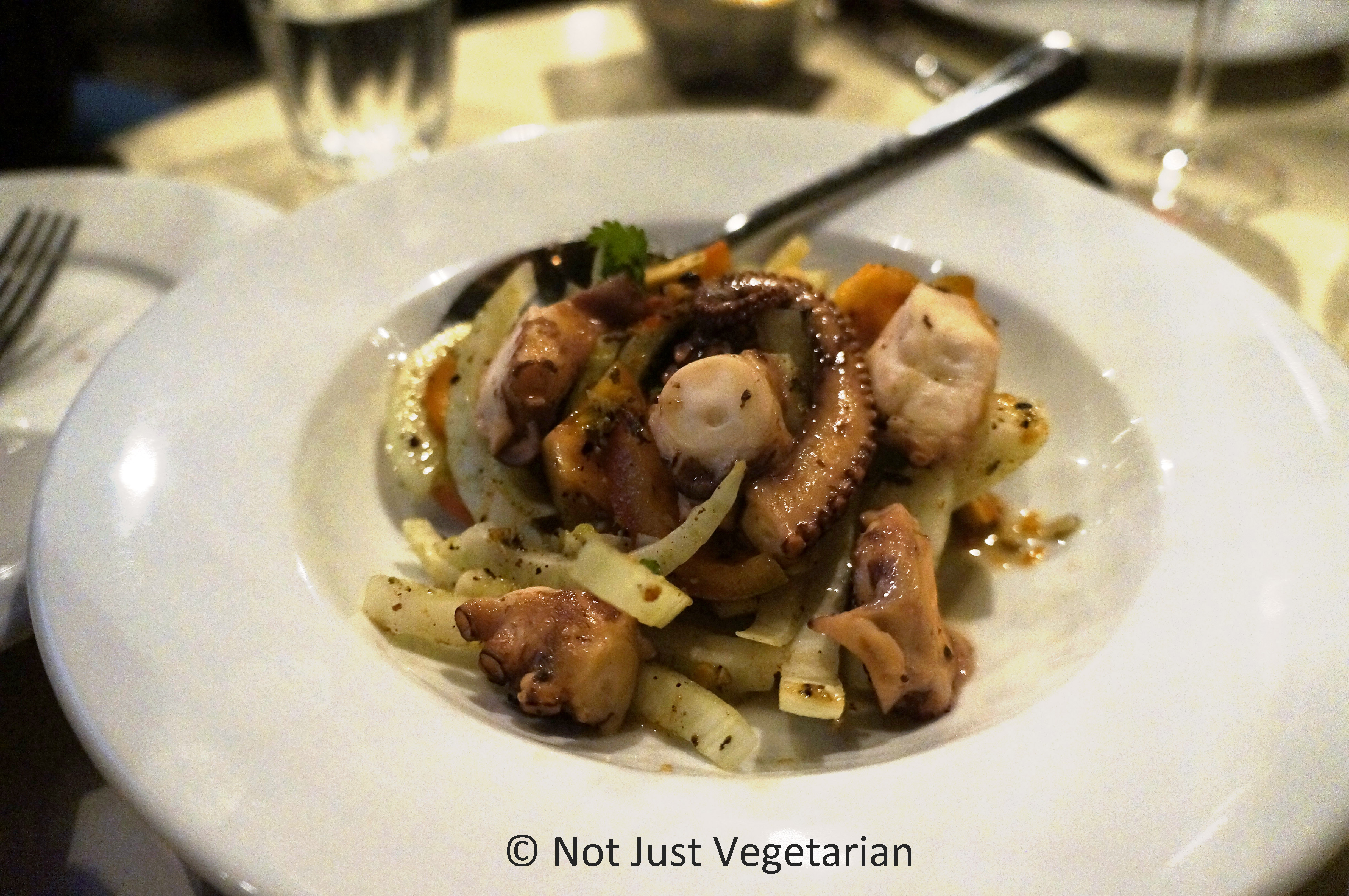 Octopus salad with shredded fennel, black pepper, plam sugar and fish sauce at Dock Kitchen in London